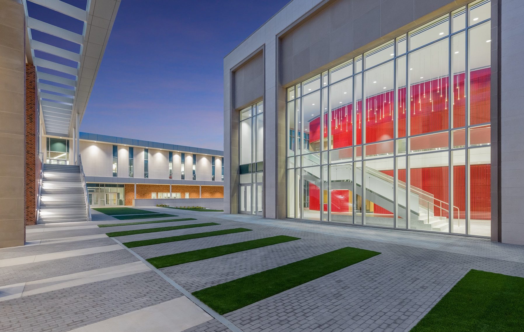 This project is a 92,500 sf addition featuring a 1,000-seat auditorium, drama classrooms, performing art spaces, fine art spaces, maker spaces, core classrooms, teacher spaces, and student common areas.